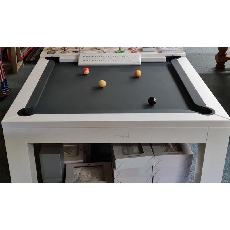 Modèle d'exposition Lewis hêtre 2m20 sur 1m25 , drap gris anthracite, version UK + retour de billes centralisé dans casier escamotable.